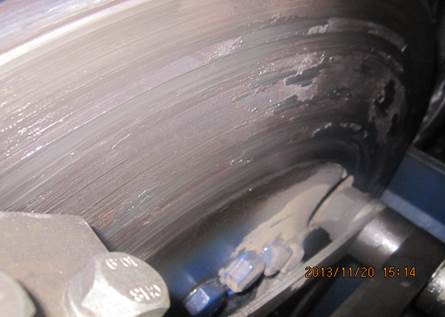---摩擦片磨損不對(duì)稱(chēng),導(dǎo)致磨損報(bào)警失效,出現(xiàn)鋼背與剎車(chē)盤(pán)直接磨損的情況,損壞剎車(chē)盤(pán),甚至引起火災(zāi)